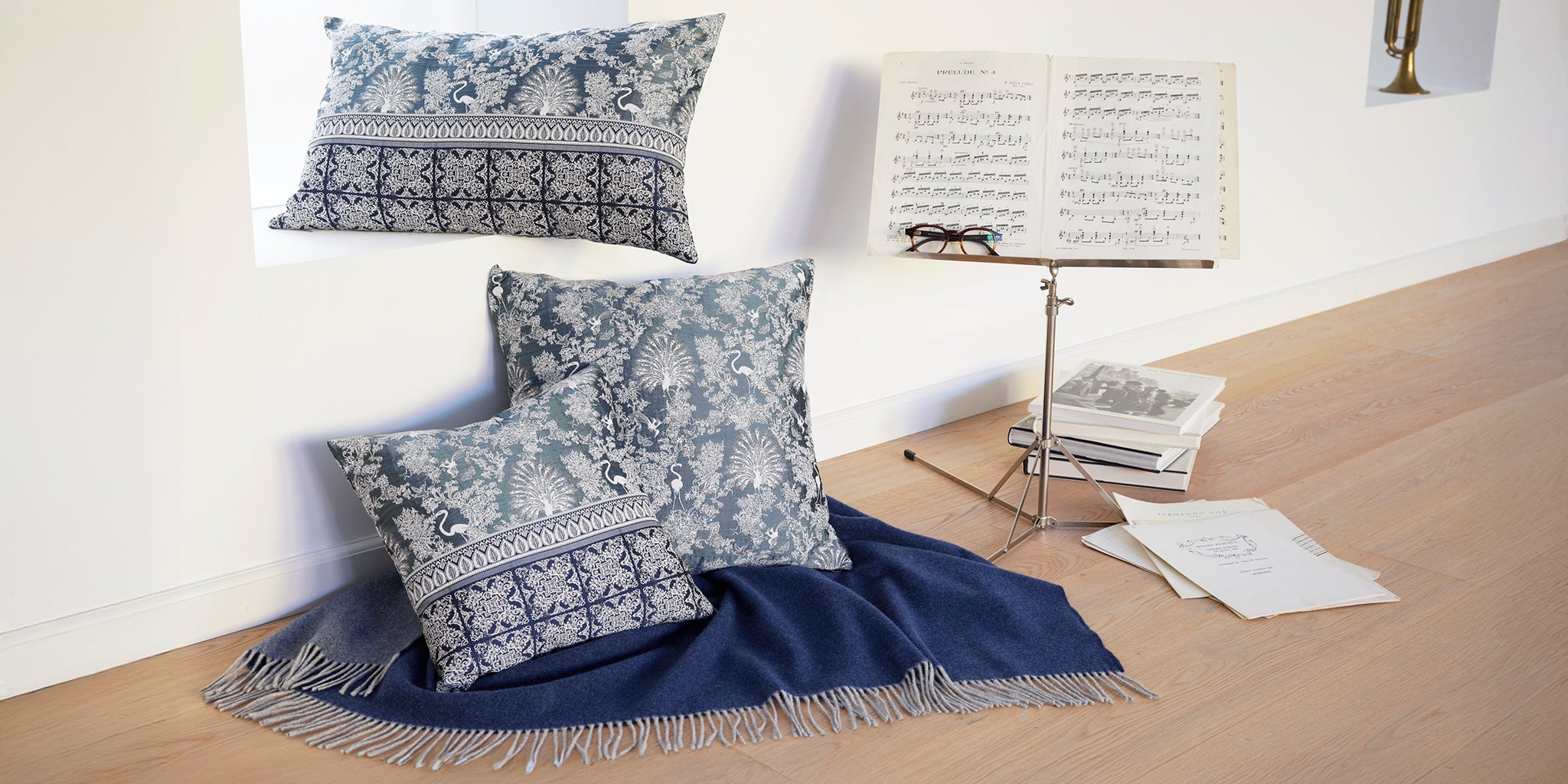 A velvet cushion looks particularly elegant next to a high-quality wool blanket and