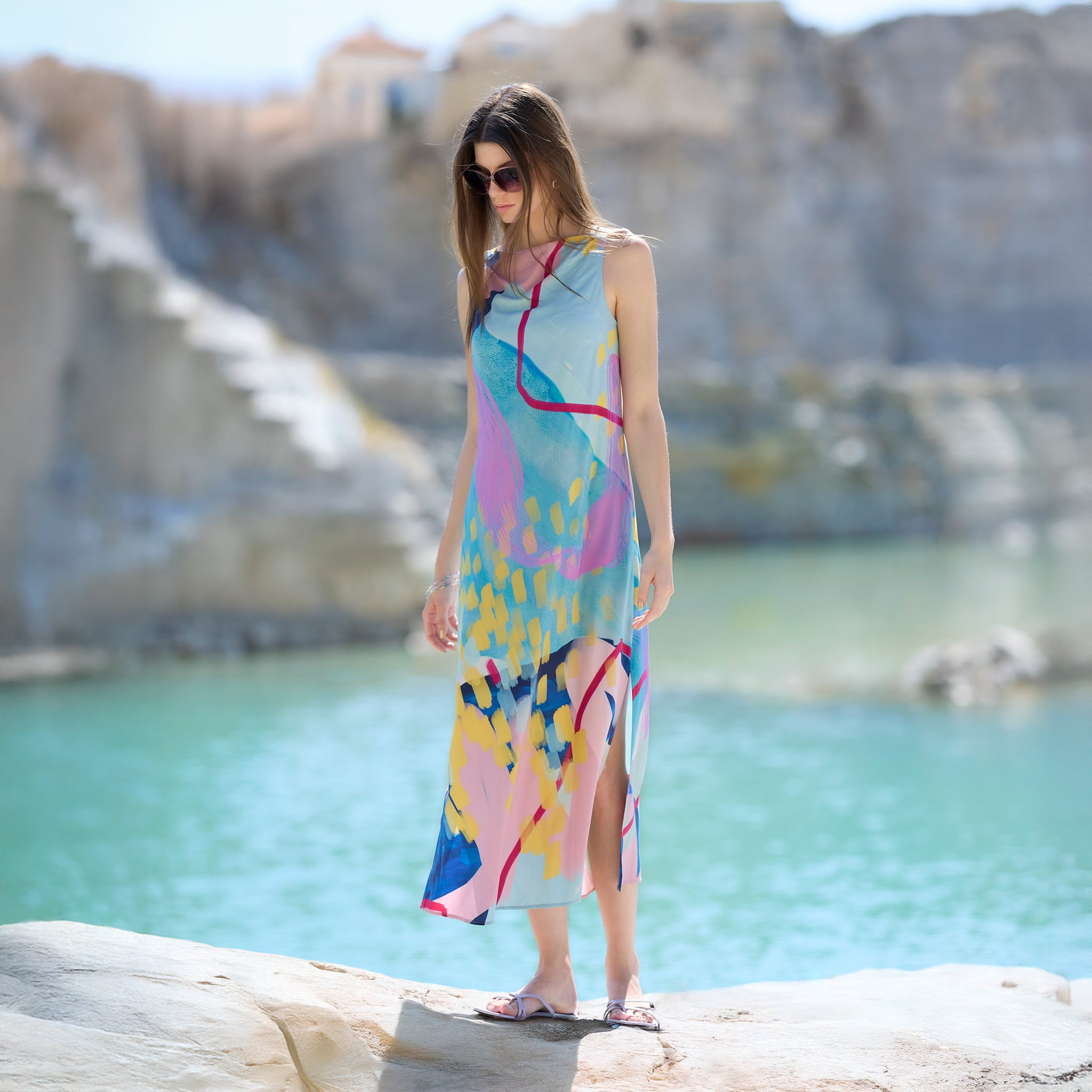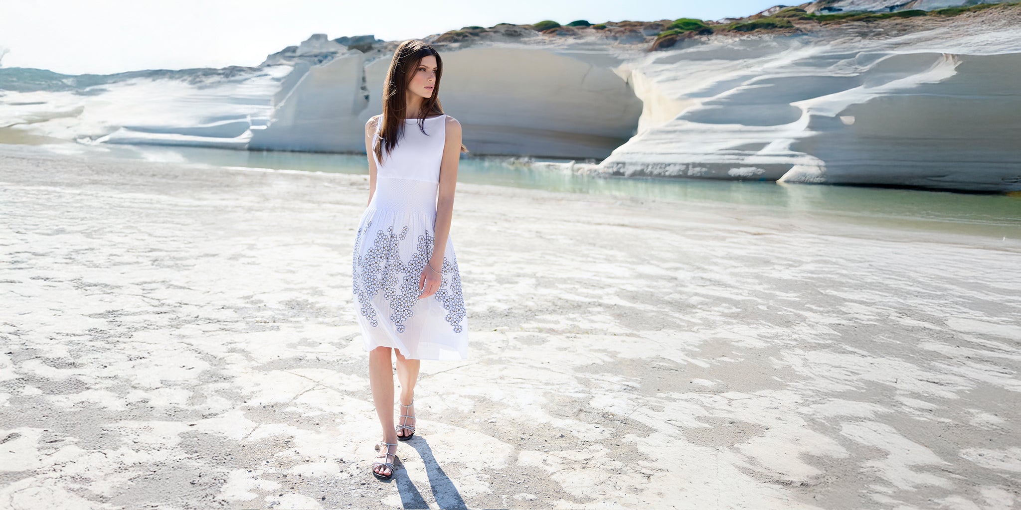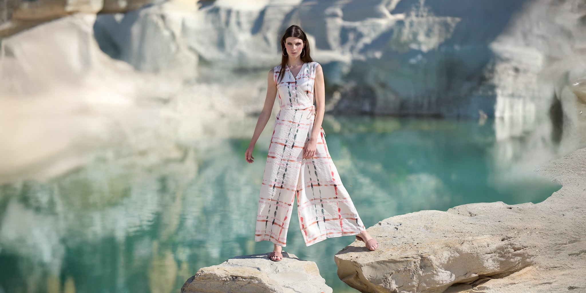 Bold reds and soft oranges combine with flowing silhouettes – our two-piece suits and dresses are inspired by the lightness of the sea and the colors of tropical coral reefs.