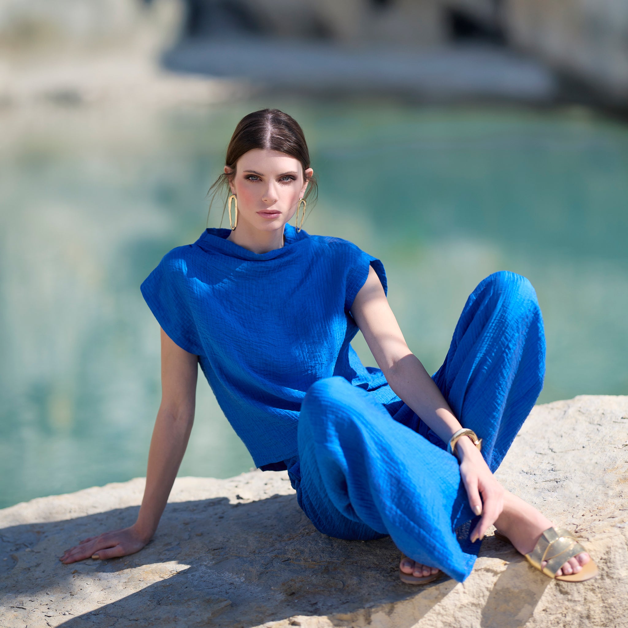 Rich, vibrant blue meets soft, textured fabric for a powerful, lively look.