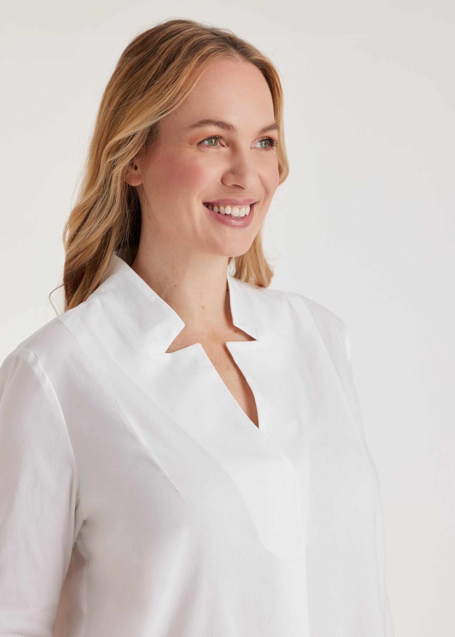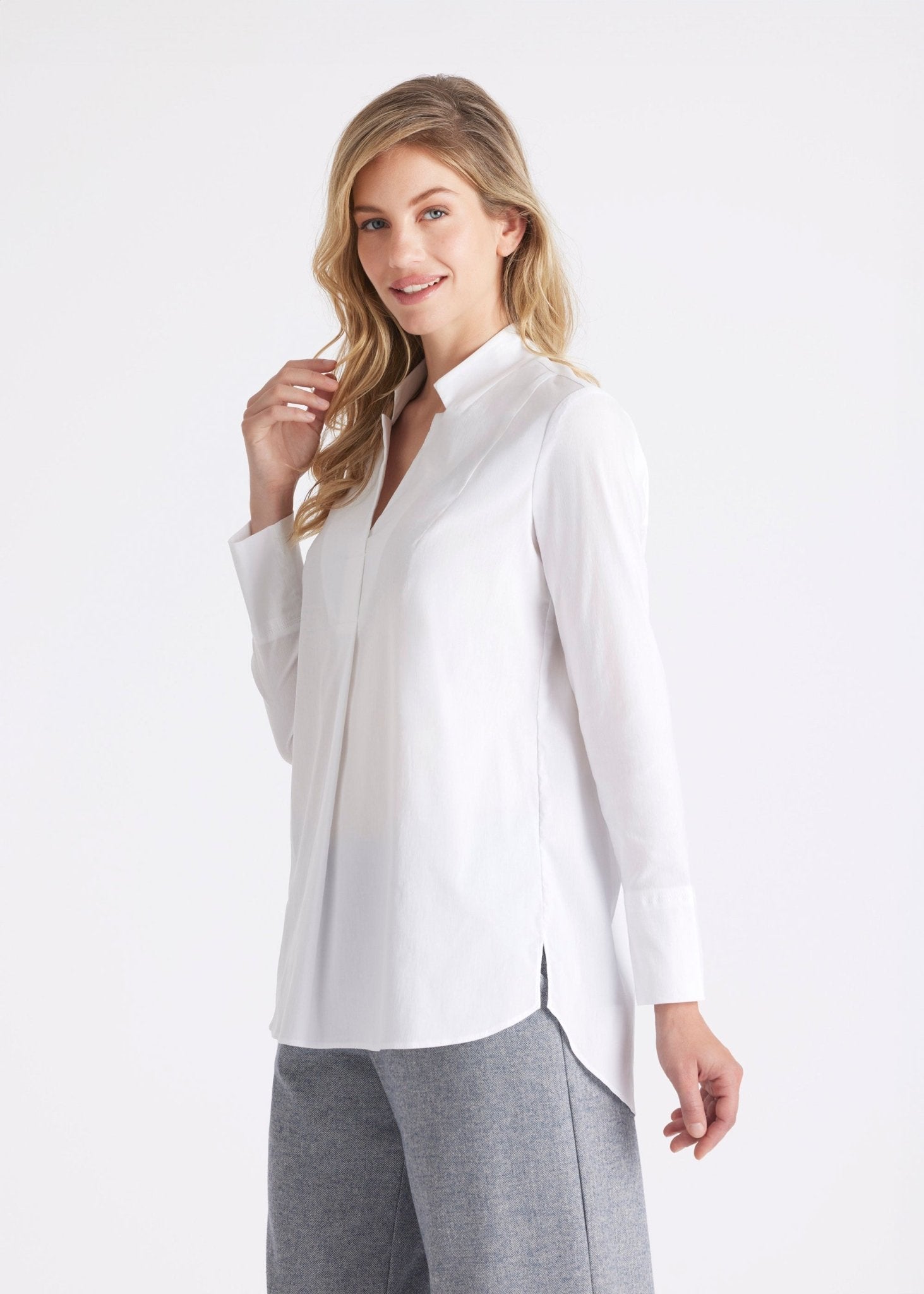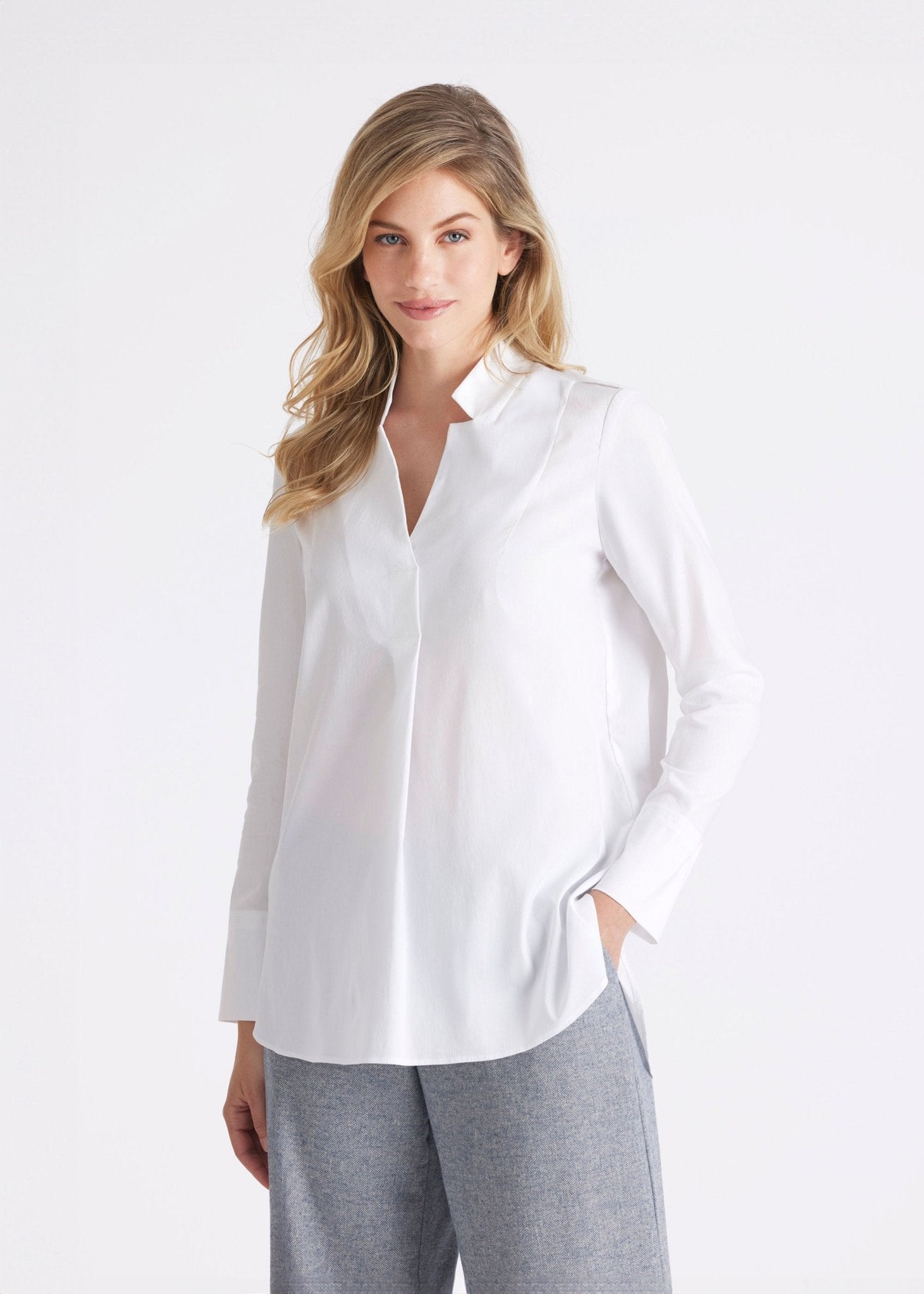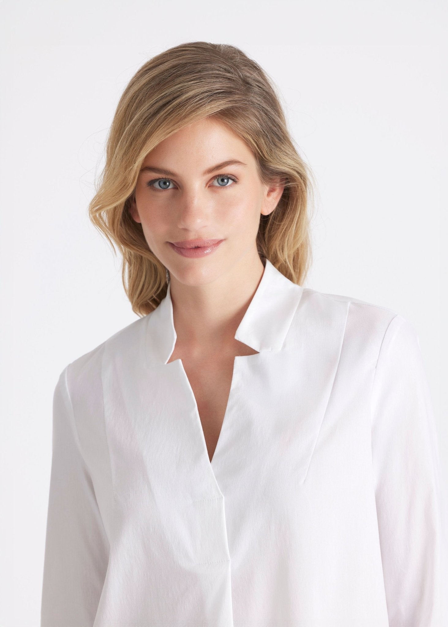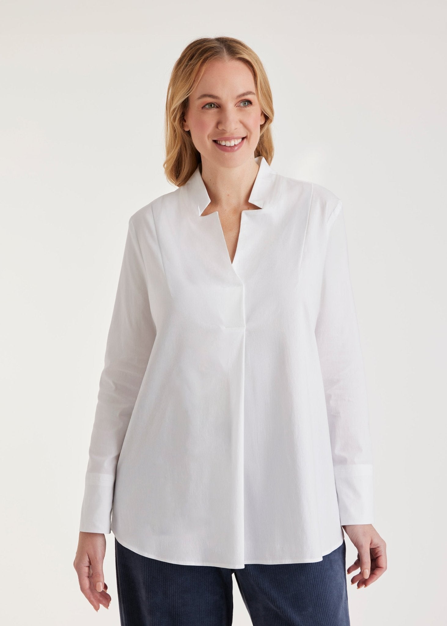 A feel-good piece for every day! The BABLUE long blouse, made from soft cotton stretch, has a relaxed fit and is perfect for layering. The V-neck adds a feminine touch, while a sophisticated pleat at the front creates structure and movement. With its long sleeves, it's ideal for the transitional seasons. Whether worn on its own or layered under knitwear, this blouse makes any look autumnal.
