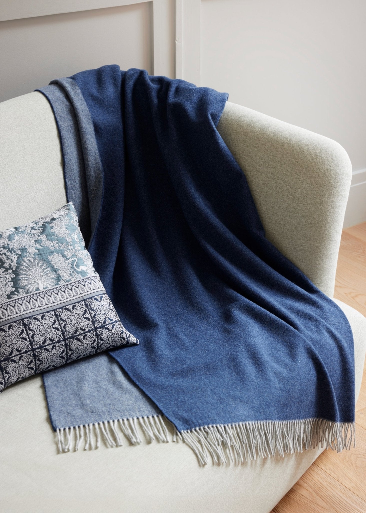 The feather-light LANA plaid, made from 100% extra-fine virgin wool, is wonderfully soft, thin, and pleasantly warm. The double-face design (except for the grey version) showcases two harmonious color sides, finished with casual fringe for a vibrant look. Perfect as a stylish accent or a cozy companion.