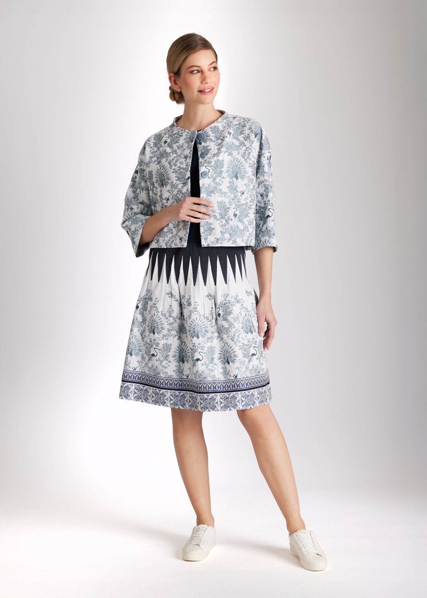 Short, chic, and versatile: The ELOSIA jacket in elegant jacquard made from a soft cotton blend adds that certain something to any outfit. The wide three-quarter sleeves and boxy cut create a modern, relaxed look. With its round neckline and button placket, it's a stylish piece to mix and match.