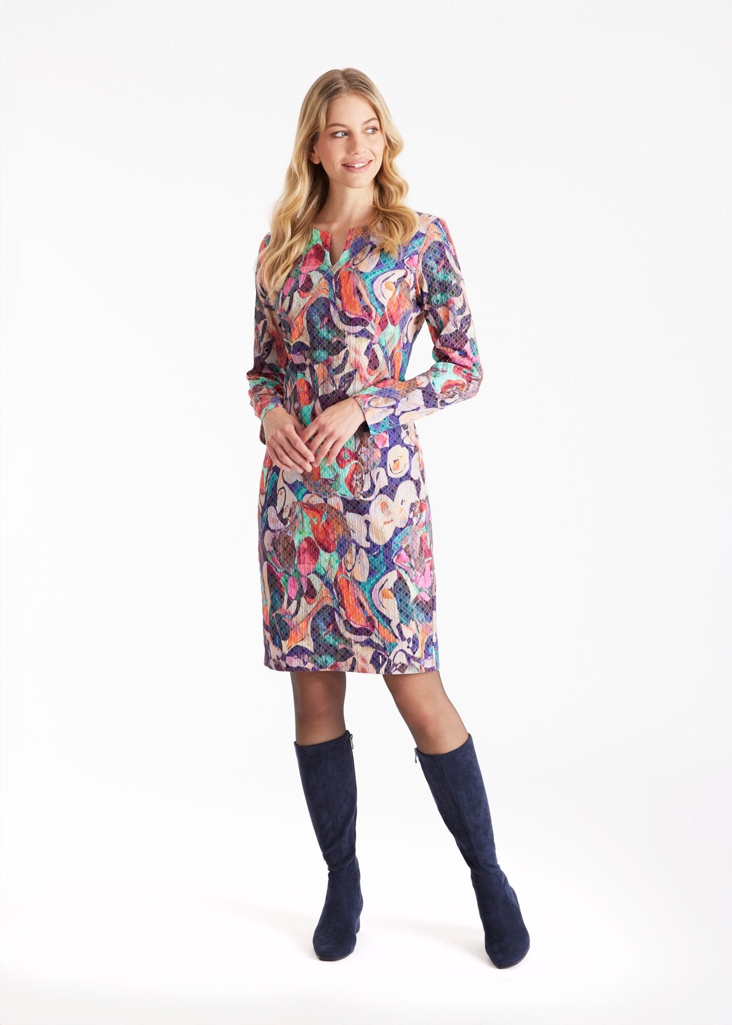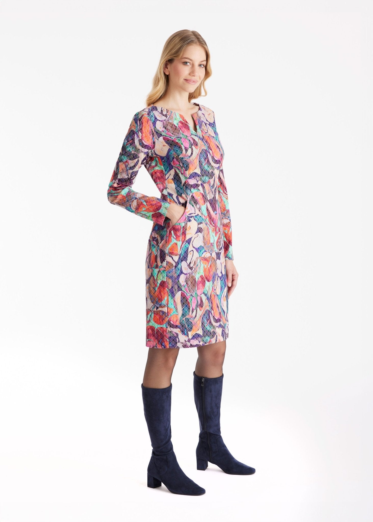 Clean lines, bold presence: The EGENIA sheath dress exudes understated sophistication. The small V-neck adds an artistic touch to the clean design, while the straight cut confidently accentuates the silhouette. The soft viscose with added stretch ensures optimal comfort. Side pockets add a modern touch to the elegant look.