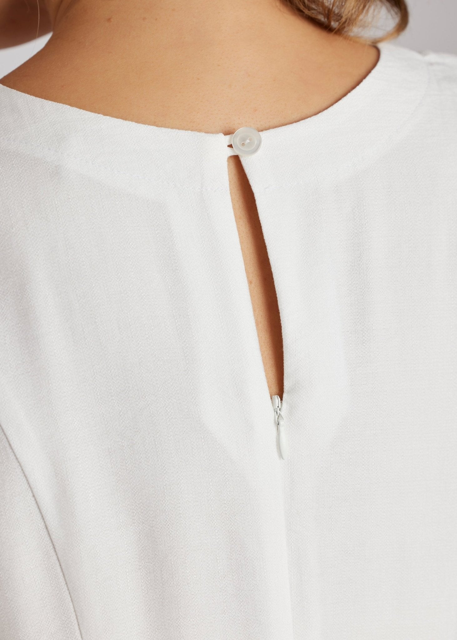 The NOWINA midi dress is a true all-rounder. The lightly textured rayon fabric and the tailored midi-length cut create an elegant silhouette, while the full skirt adds beautiful movement. With its round neckline, sleeveless design, and practical back closure, it pairs perfectly with the HOLLYWOOD bolero.