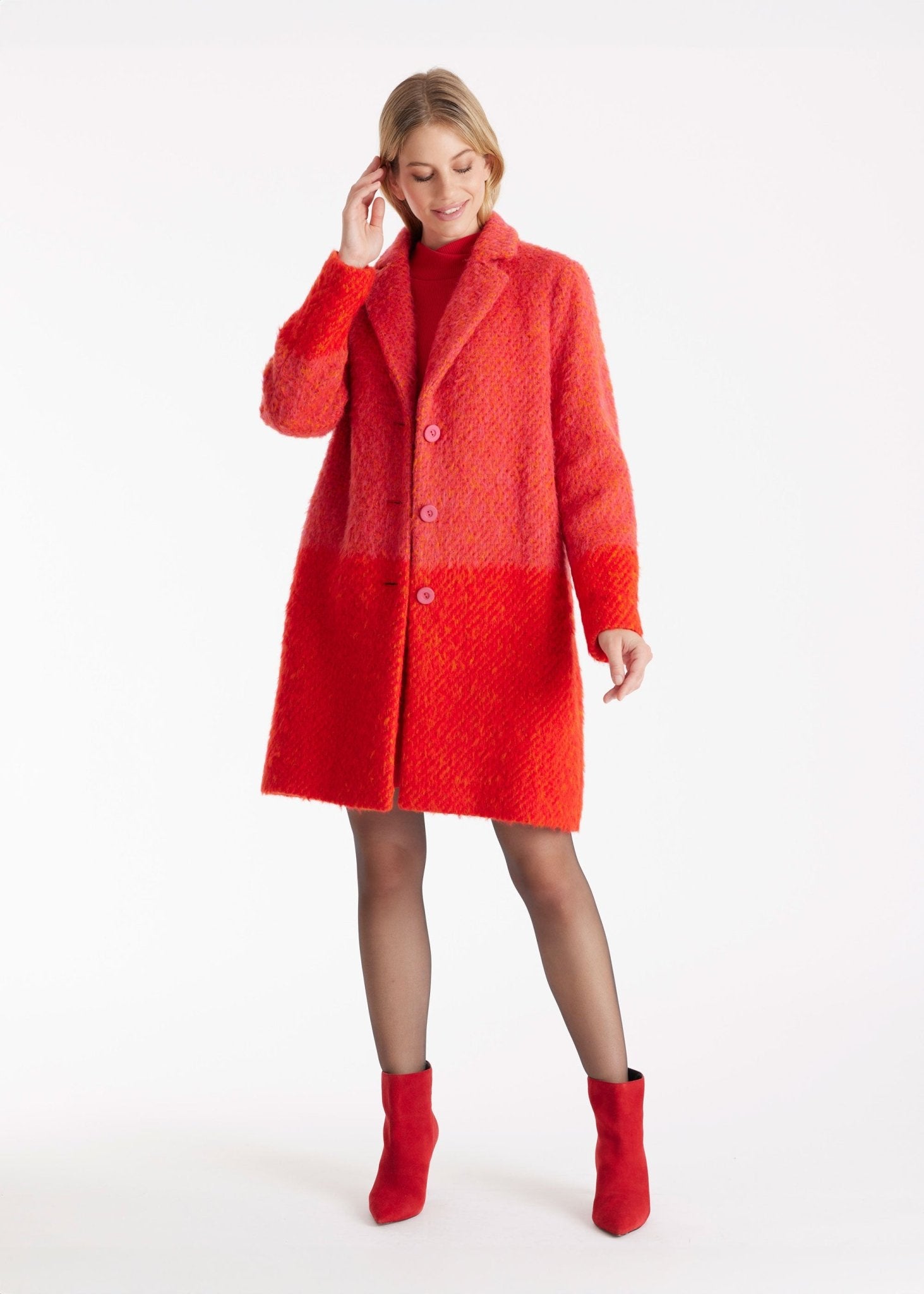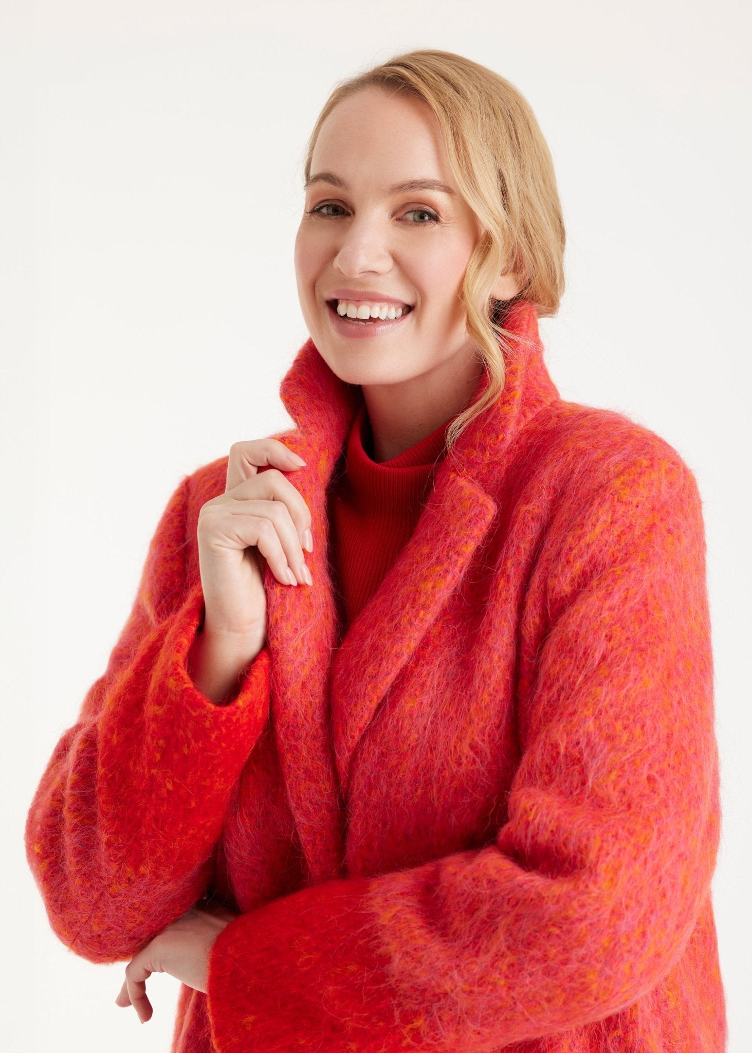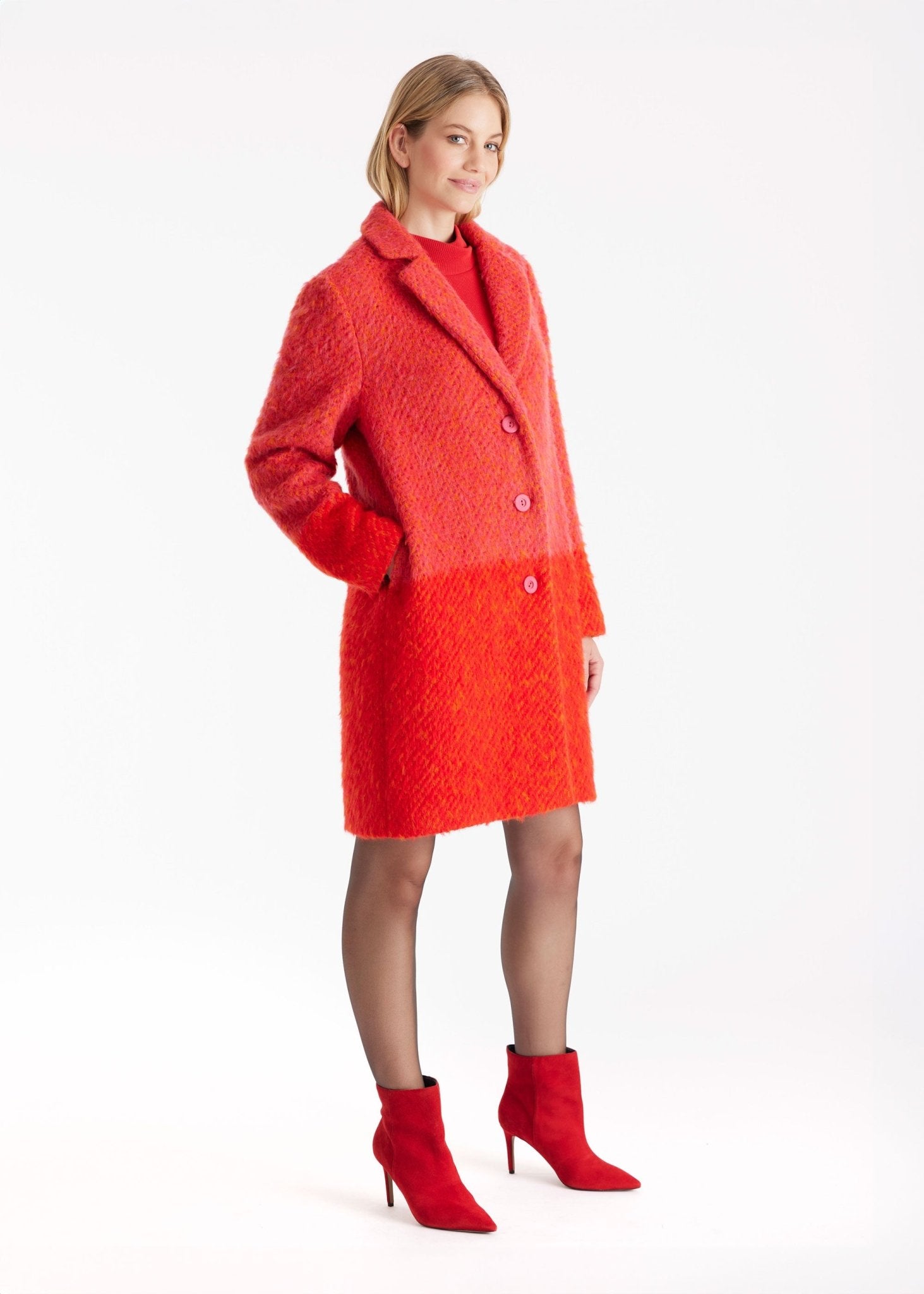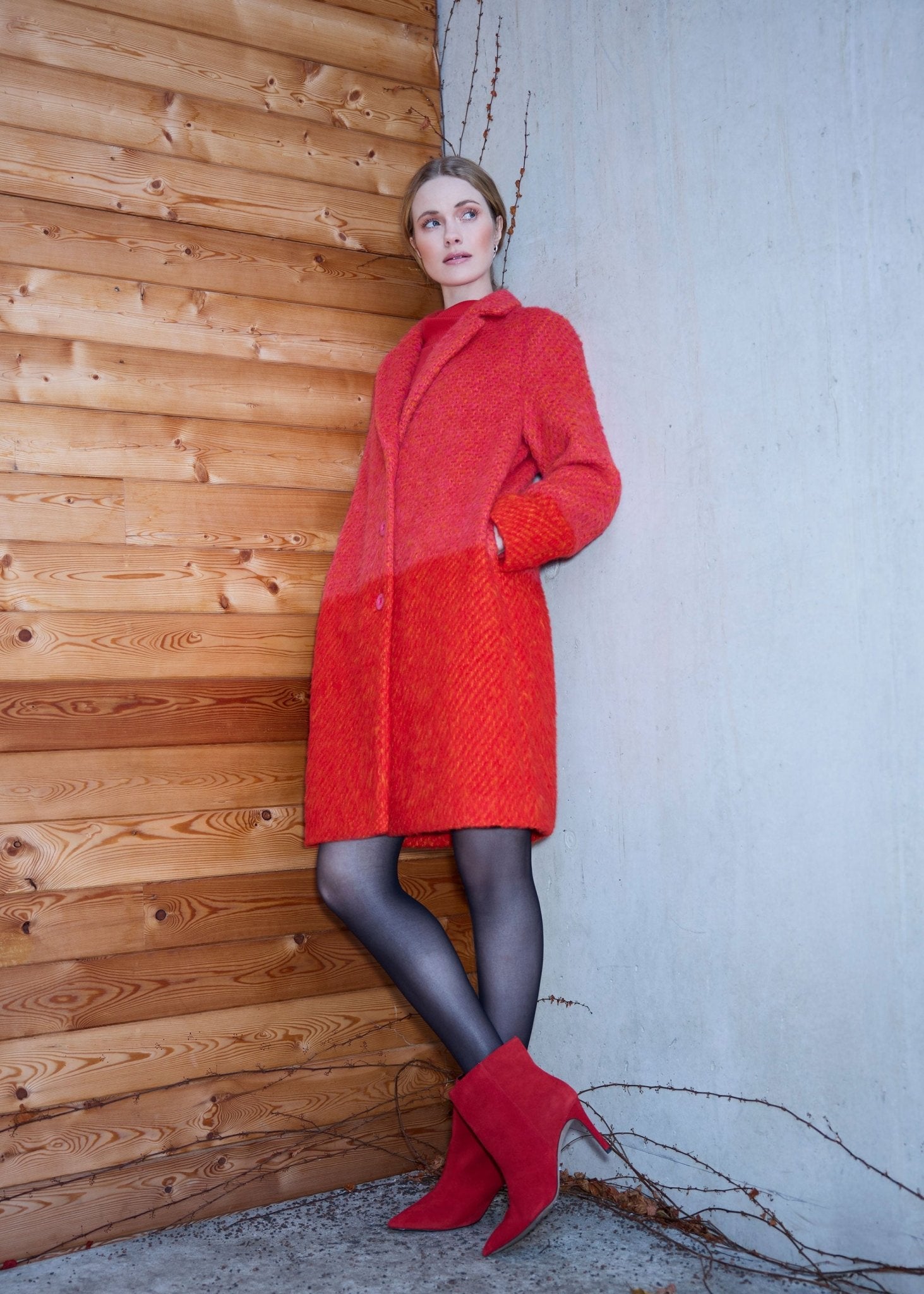 A statement for gray days – our PURAMANI coat brings color into play. The high-quality bouclé with its intense color creates an expressive look that immediately catches the eye. A classic collar with lapels, straight fit, and full-length button placket make it a confident companion. Whether worn casually or as a highlight to a simple outfit, this coat sets a tone.