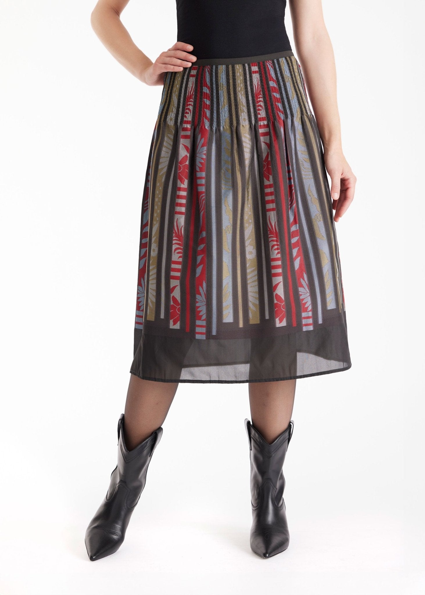 One-size skirt LAFOLKORO in jacquard, midi length with pleats