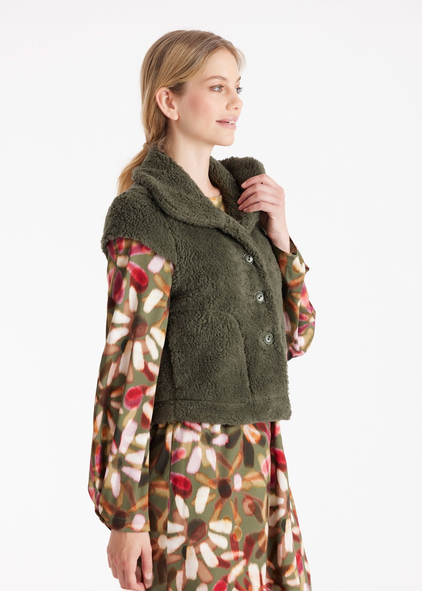 WESPUSA vest made of teddy fabric in an A-line shape